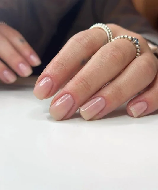 A fresh nail bed, a neutral nail, and a hint of soft pink.